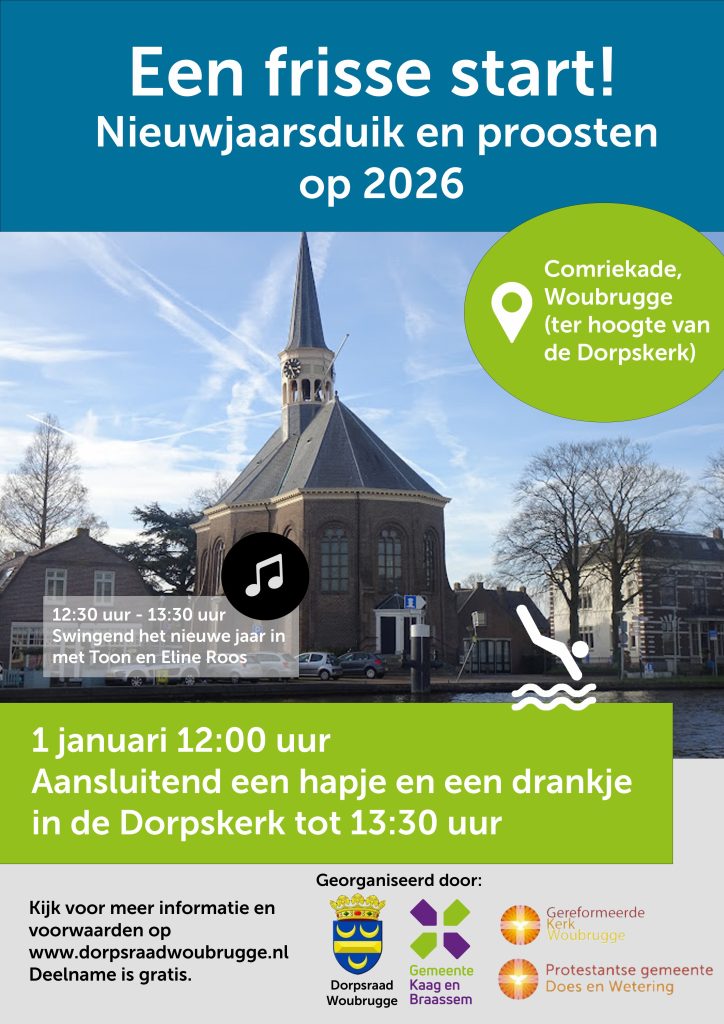 Does – Kromme Does – Wijde Aa – Woudwetering. Dat is de verbinding die we hebben via het water in onze kerkelijke omgeving Hoogmade – Woubrugge en omstreken. Naast het water waar we in zwemmen, varen en soms op kunnen schaatsen verbindt het water ons in geloof. We hebben het dan over het levende water. Vanaf 1 januari 2022 zijn de Protestantse gemeente Hoogmade-Rijpwetering en de Hervormde gemeente dorpskerk Woubrugge samengegaan in Protestantse gemeente Does en Wetering. Het is een nieuw begin dat beide kerken samen sterker maakt, tot eer van onze Heer Jezus Christus.